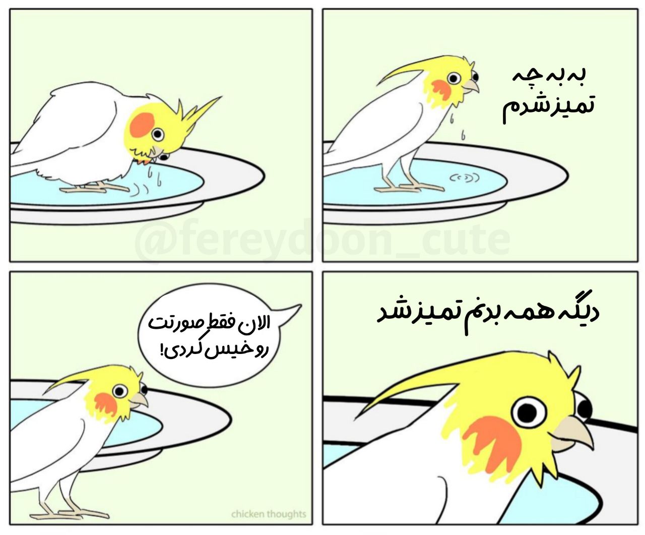 تیتوی منم فقط سرشو می شوره میگه خب به به خیلی تمیز شدم😂