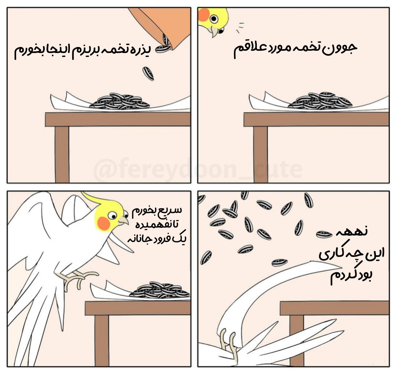 بامزه بود🤣🤣، برای من۴ تخم گذاشته دو شنبه هفته اینده در میاد😇🥰🥰😍