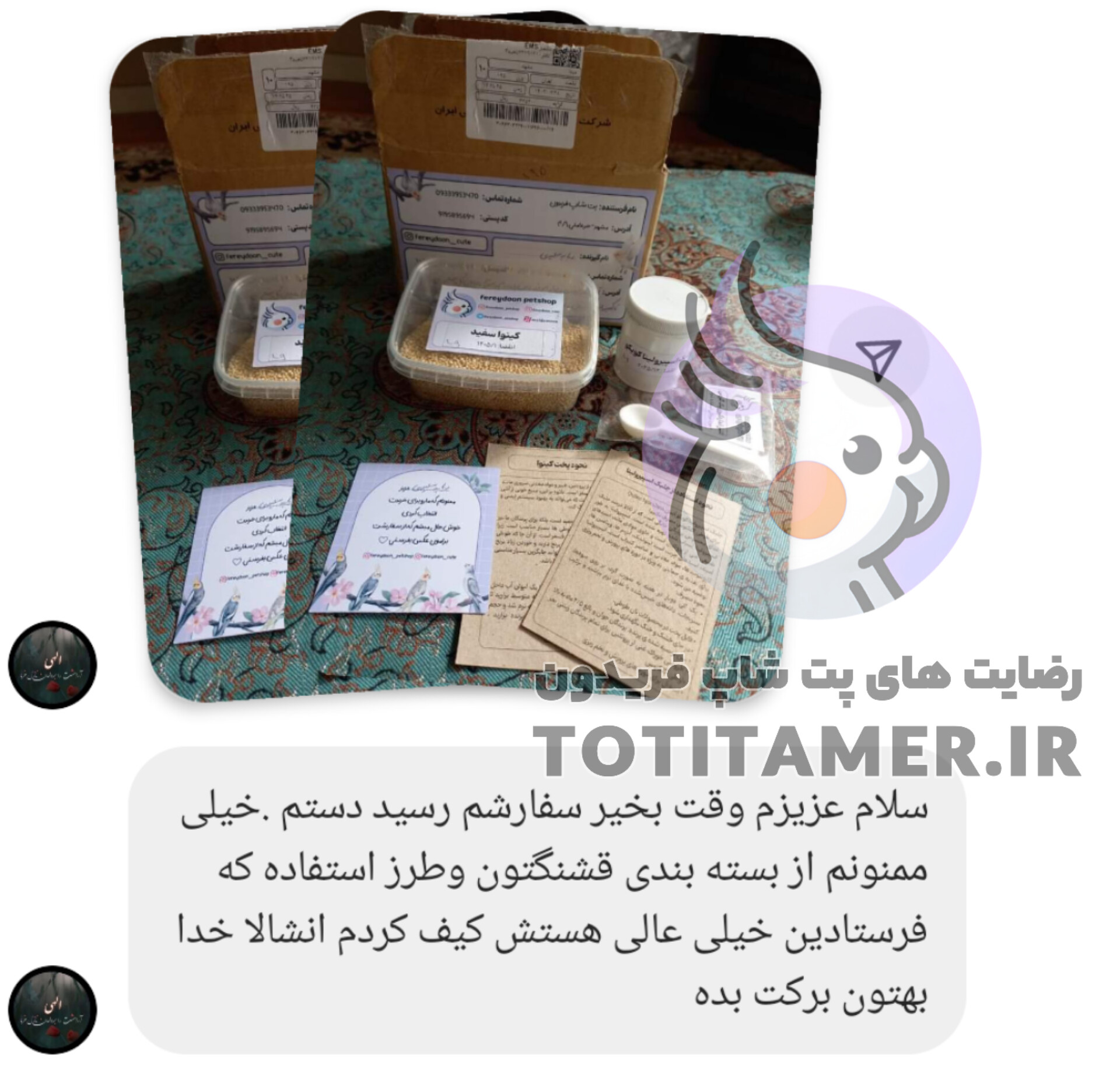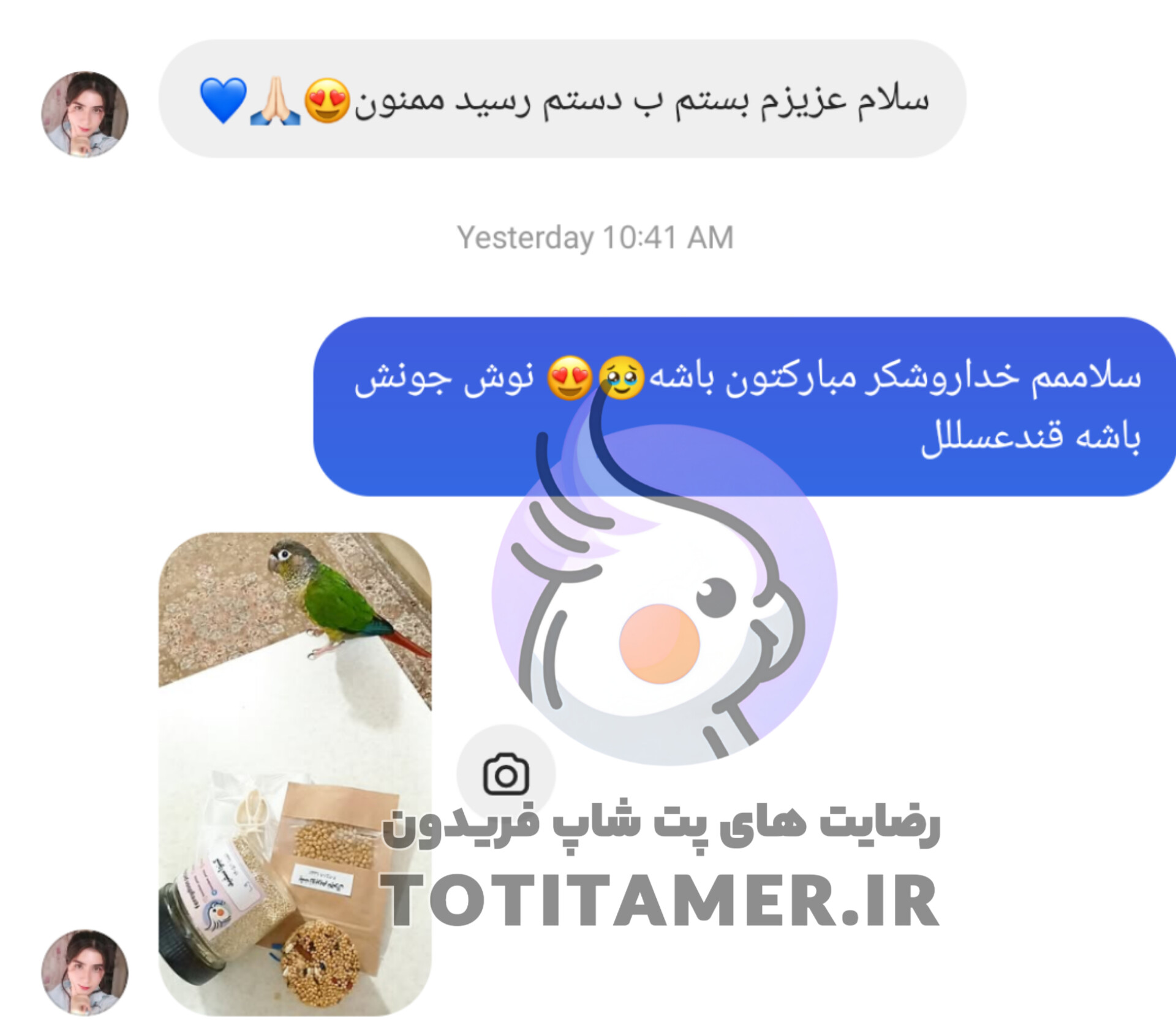ما همچنین به عنوان یک منبع معتبر، آمادهایم تا به شما در انتخاب بهترین محصولات کمک کنیم. اگر در مورد نیازهای خاص طوطی خود سوالی دارید یا نیاز به مشاوره دارید، تیم ما با کمال میل آماده پاسخگویی به شماست.