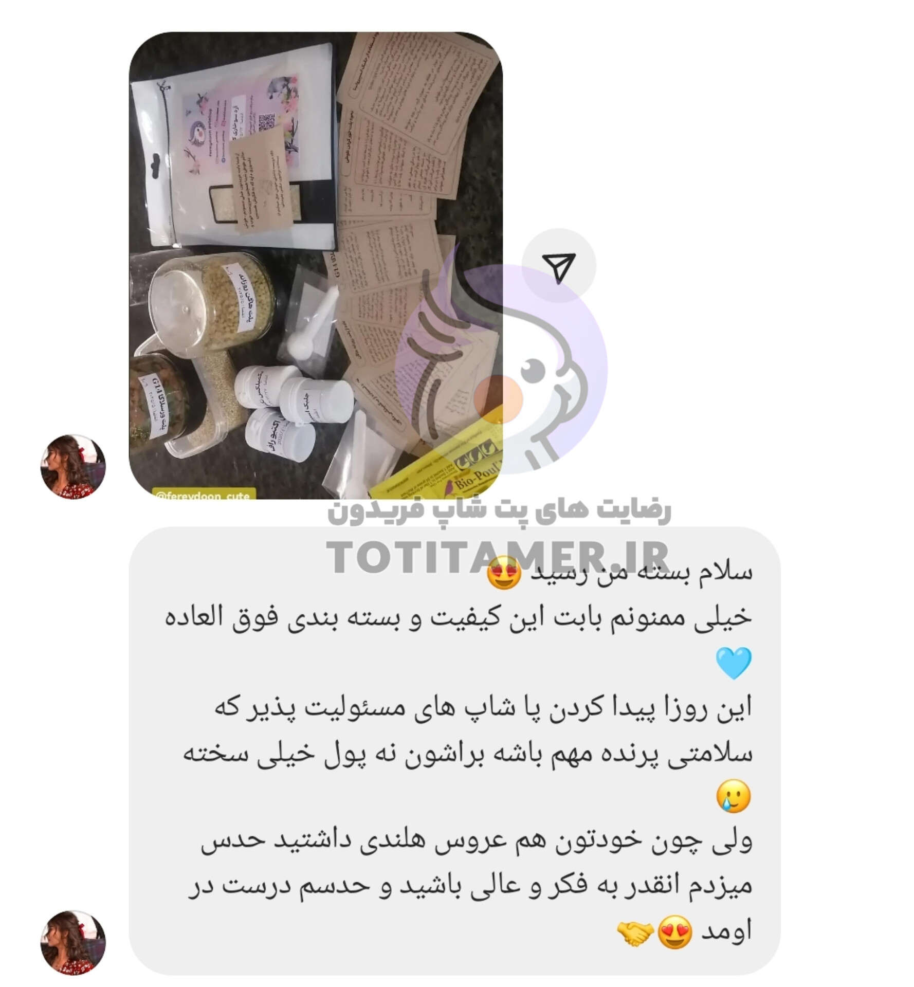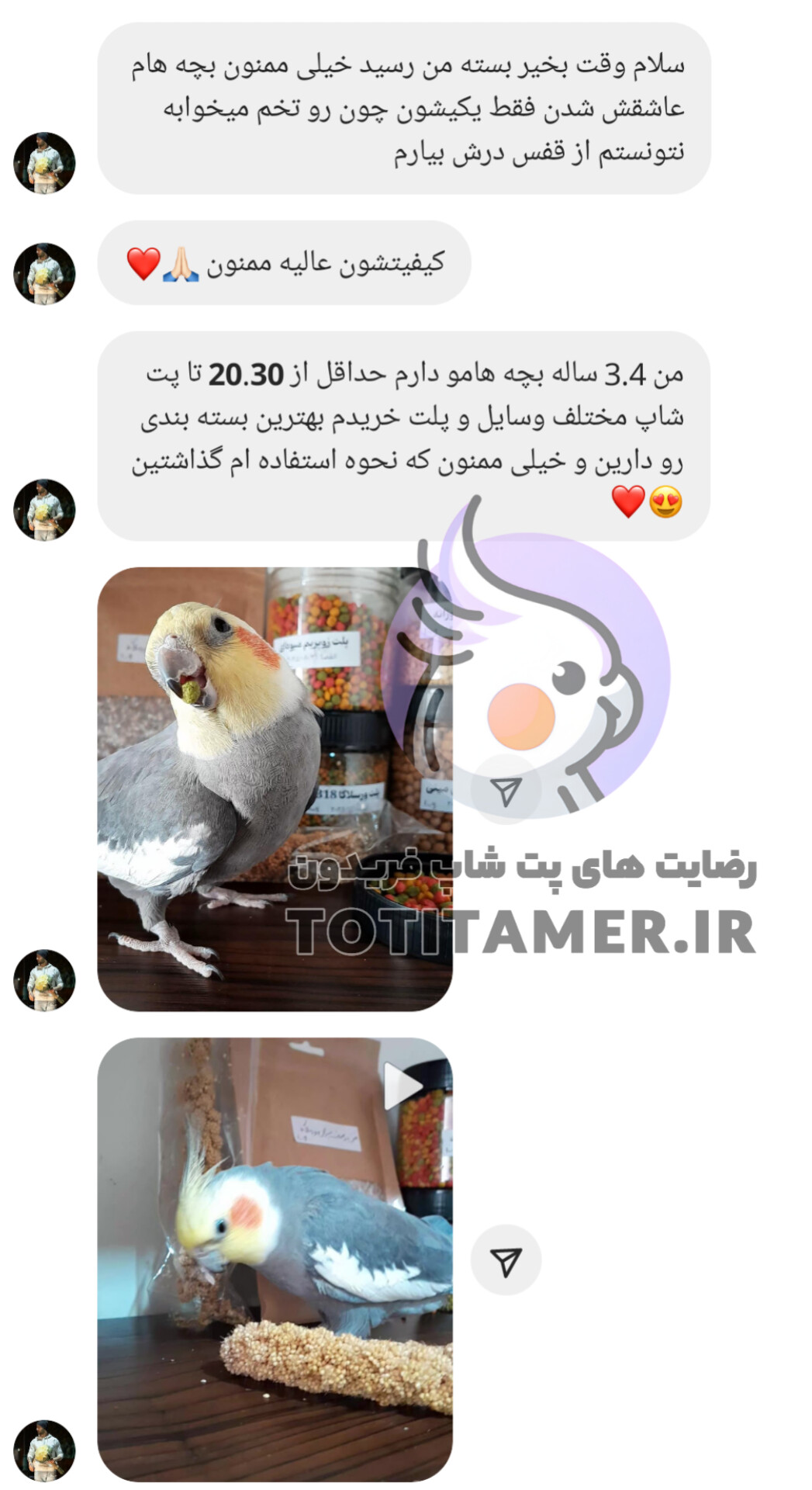 ما از مشتریان خود بازخوردهای مثبتی دریافت کردهایم که نشاندهنده رضایت آنها از محصولات ماست. بسیاری از خریداران گزارش دادهاند که طوطیهایشان پس از استفاده از این غذاها، انرژی بیشتری دارند و رفتارهای شادابتری از خود نشان میدهند.