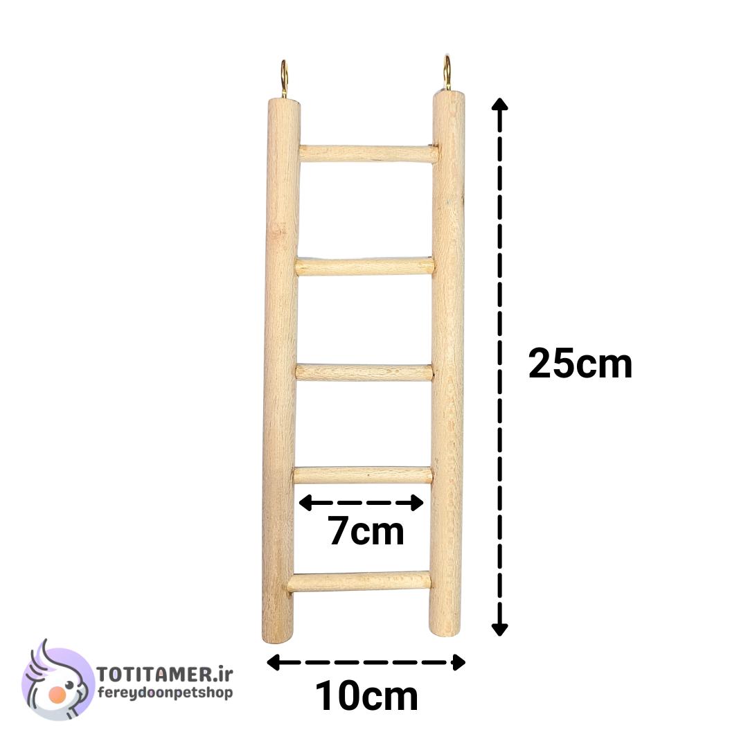 طراحی ۵ پلهای این نردبان با اندازه و جثهی پرندههای کوچیک تا متوسط هماهنگه؛ برای عروسها یا طوطیهای کوچیک، بالا رفتن ازش راحت و جذابه، و برای پرندههای کمی بزرگتر هم هنوز کاملاً کاربردیه.