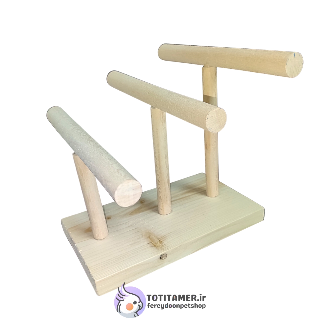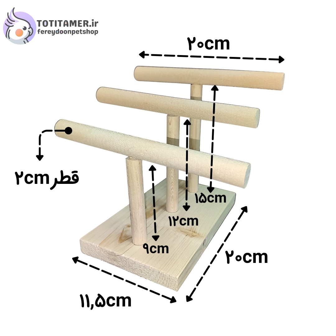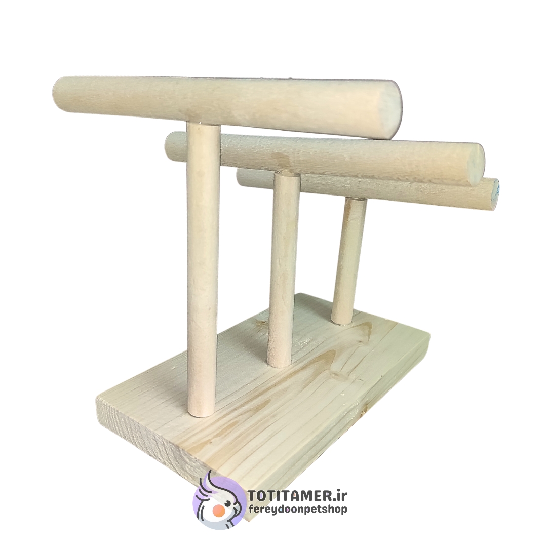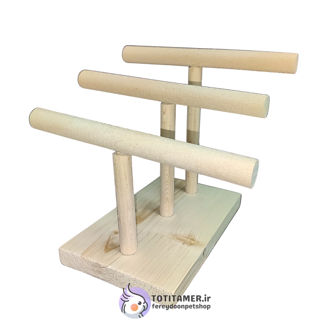 نشیمن چوبی سهپله T شکل با طراحی ساده ولی کاربردی ساخته شده تا پرندهتون بتونه راحت بالا و پایین بره، استراحت کنه و حس طبیعت واقعی رو تجربه کنه.